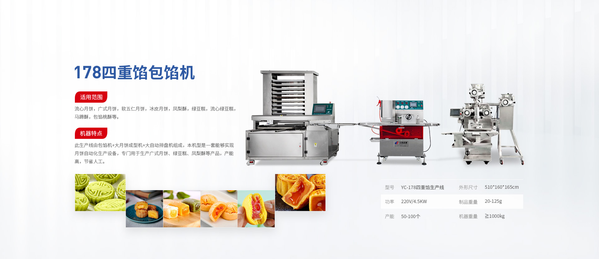 適用范圍:可適用于:500/1000/1500g大月餅等烘烤類產品、火鍋類產品、蒸煮類產品、早餐類產品等